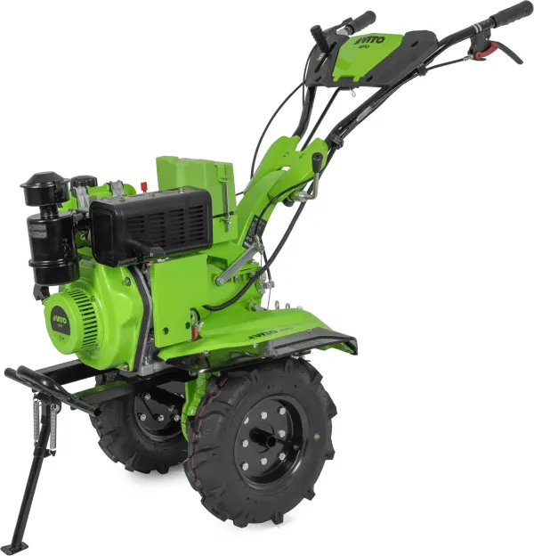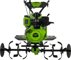 Motoenxada Diesel de Transmissão Direta – 7CV da VITO (VIMEDTD7B). Com motor diesel de 246cc e 7cv/5.2 kW, é perfeita para terrenos de média a pequena dimensão. Arranque elétrico proporciona comodidade no início das operações, enquanto a tripla filtragem e o sensor de óleo garantem durabilidade e desempenho consistente do motor. A caixa de 3 velocidades (2 frente + 1 trás) oferece versatilidade para se adaptar a diferentes condições de solo e tarefas. As fresas com 35 cm de diâmetro e o abre regos asseguram um trabalho preciso e eficiente. Além disso, o ajuste rápido do descanso frontal torna o manuseamento mais prático e confortável. Prepare-se para enfrentar qualquer desafio no seu terreno com a confiança e desempenho da Motoenxada Diesel de Transmissão Direta da VITO.