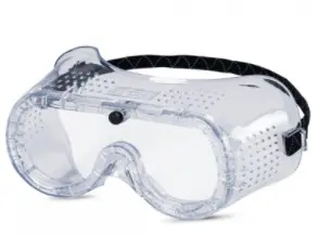 Ventilação indireta. Lentes em policarbonato endurecido. Podem ser usados com óculos graduados .
