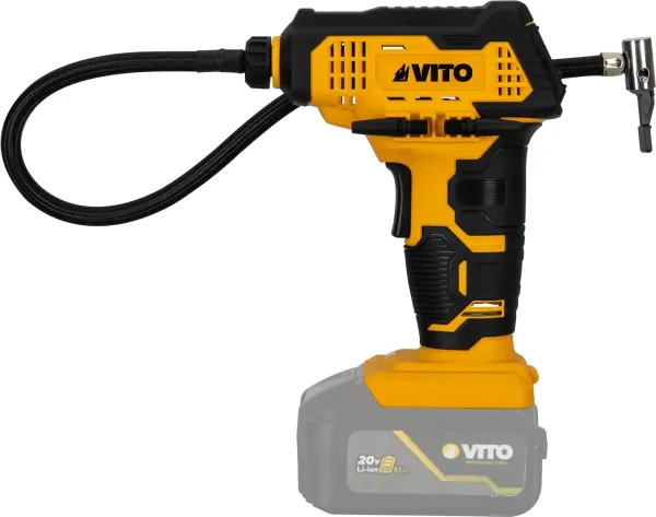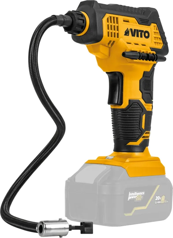 Pistola Compressor EGO 20V da VITO para trabalhos de alta pressão, ideal para encher pneus, bicicletas e bolas.