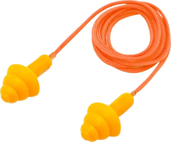 Protetor auricular com fio em silicone, de modo a evitar os ruídos mais incomodativos.